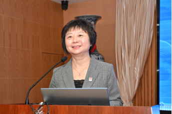 Prof. Liu Hong, President of Dalian University of Foreign Languages and Chairwoman of the MOE Russian Language Teaching Steering, gives a presentation.
