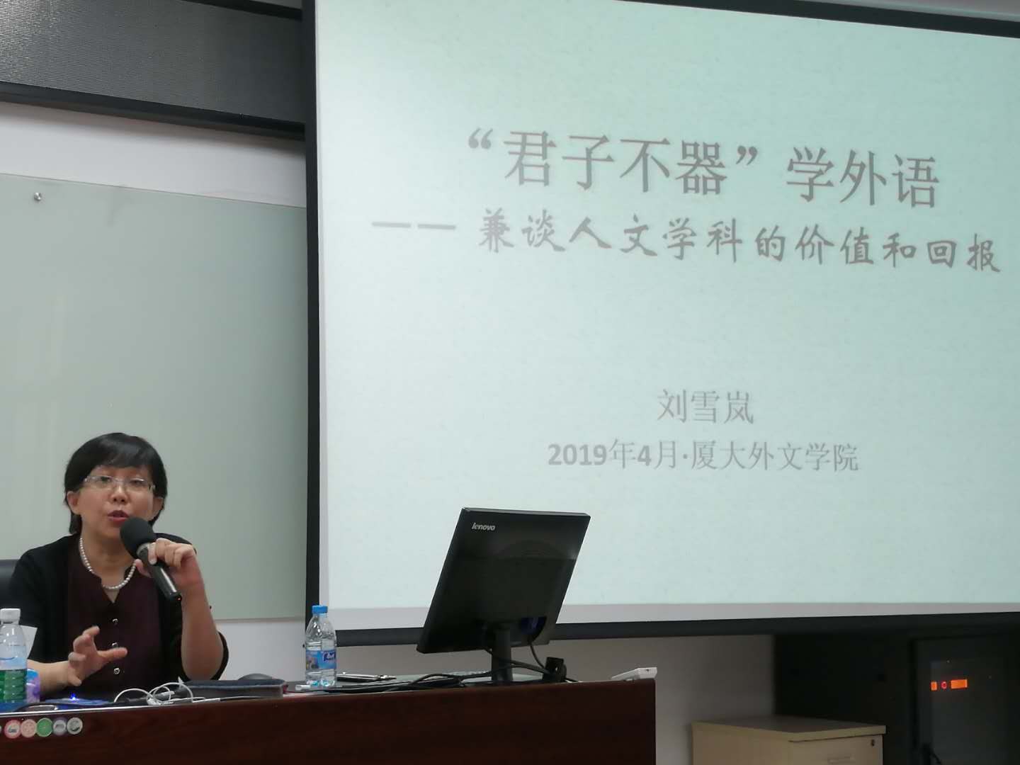 刘雪岚教授的讲座题为“君子不器——兼谈人文学科的价值与回报”。刘教授引用《论语·为政篇》中“君子不器”的观点,指出21世纪的大学需要培养的人才并不是单纯地追求某一项专业技能,而是拥有长远眼光、有智慧、有哲理、有修养的高素质人才。具体到外国语言文学学科,新时代的外语学科要培养的人才不仅仅要拥有专业的语言技能,更要有深厚的文学与文化素养储备。刘教授结合如北京大学、复旦大学、耶鲁大学、洪堡大学等国内外知名高校的外语人才培养方案指出,外语学科教学不仅要通过科学的训练方法进行基础性的语言、文化、历史、科学知识的传授,更要注重学生高尚道德的陶冶以及个性品质的训练。刘教授认为,学习外语不应当把语言当作一种简单的工具来看待,更要感悟语言背后悠久的文化精髓和思维方式,才能在自身修养不断冶炼的过程增加文化自知,实现中西方文明传统的融会贯通。刘教授的讲授深入浅出,感情充沛,拓展了大家对外语类人才培养方法的认识,对华体网师生的专业教学和学习极具借鉴意义。