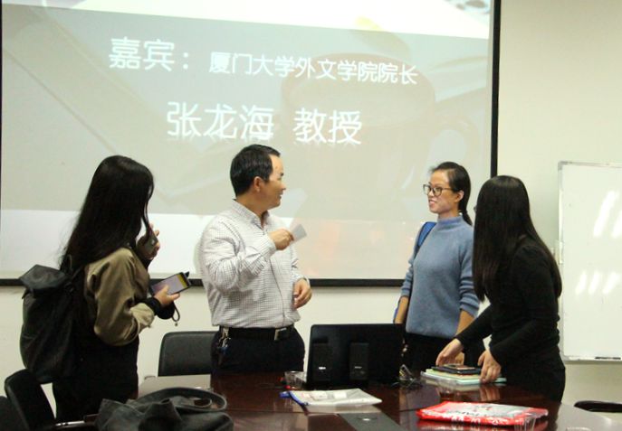 11月30日晚7点,由厦门大学外文学院主办,外文学院研究生团总支、研究生会承办的第十三期院长Coffee Time活动在南光三319会议室顺利举办。此次活动的嘉宾是外文学院院长、博士生导师、教授张龙海老师。外文学院近40名硕士、博士生围桌而坐,同院长面对面探讨学术,畅聊人生,收获颇多。