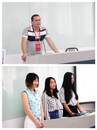 首先,外宾们来到了外文学院南光三415会议室。3名法语系同学向外宾们图文并茂地介绍了厦门大学和厦大法语系并播放了厦门大学95周年校庆纪录片。最让外宾们感到惊喜的是,法语系的学生们还带来了精彩的华体网表演,给他们留下了深刻的印象。教室里气氛活跃,互动不断。在介绍展示的最后,1名外宾作为代表上台发言,表达了来到厦门大学进行文化交流的喜悦与荣幸和对法语系学生的惊叹和赞扬。介绍环节结束后,外宾与志愿者们在外文学院院楼前合影留念。