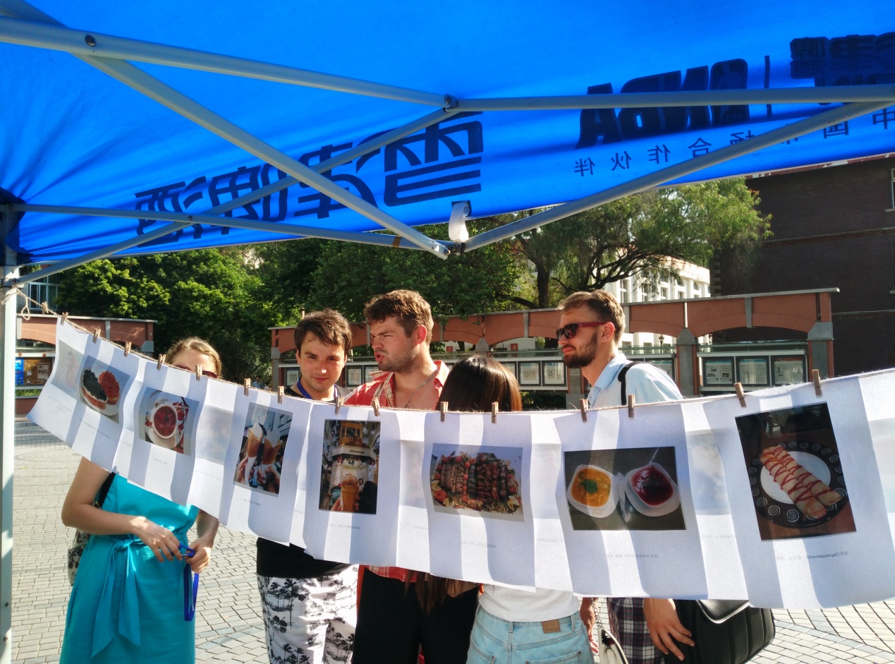 活动过程中,中俄双方的同学都非常积极,有俄罗斯同学细心的为中国同学讲解,描述他们的节日,娱乐,手舞足蹈,中俄语并用;也有中国同学为游客解释我们的活动,为他们普及俄罗斯文化知识,让大家知道,除了套娃和红场,俄罗斯还有许许多多的迷人之处。三家村一时间聚集了很多人,大家都非常踊跃的参与趣味问答,与俄罗斯友人合影。