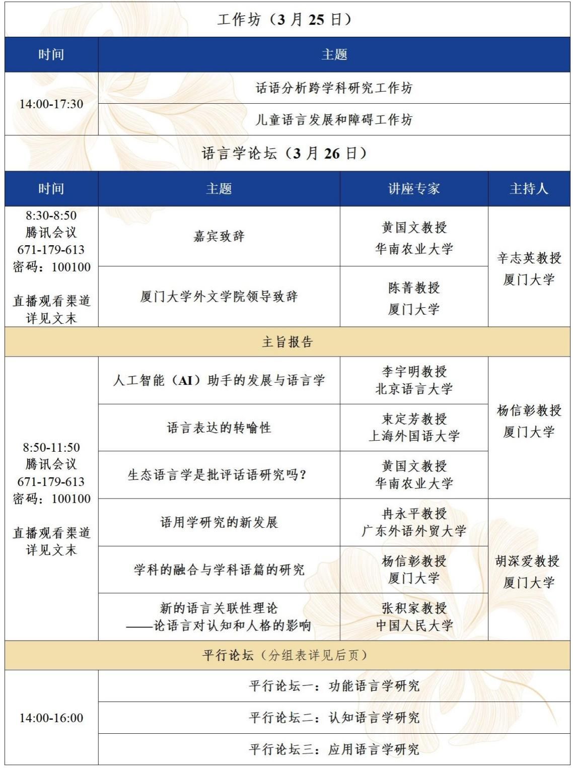 “语言学研究:功能、应用与认知”学术论坛拟于3月25至26日召开。具体议程如下: