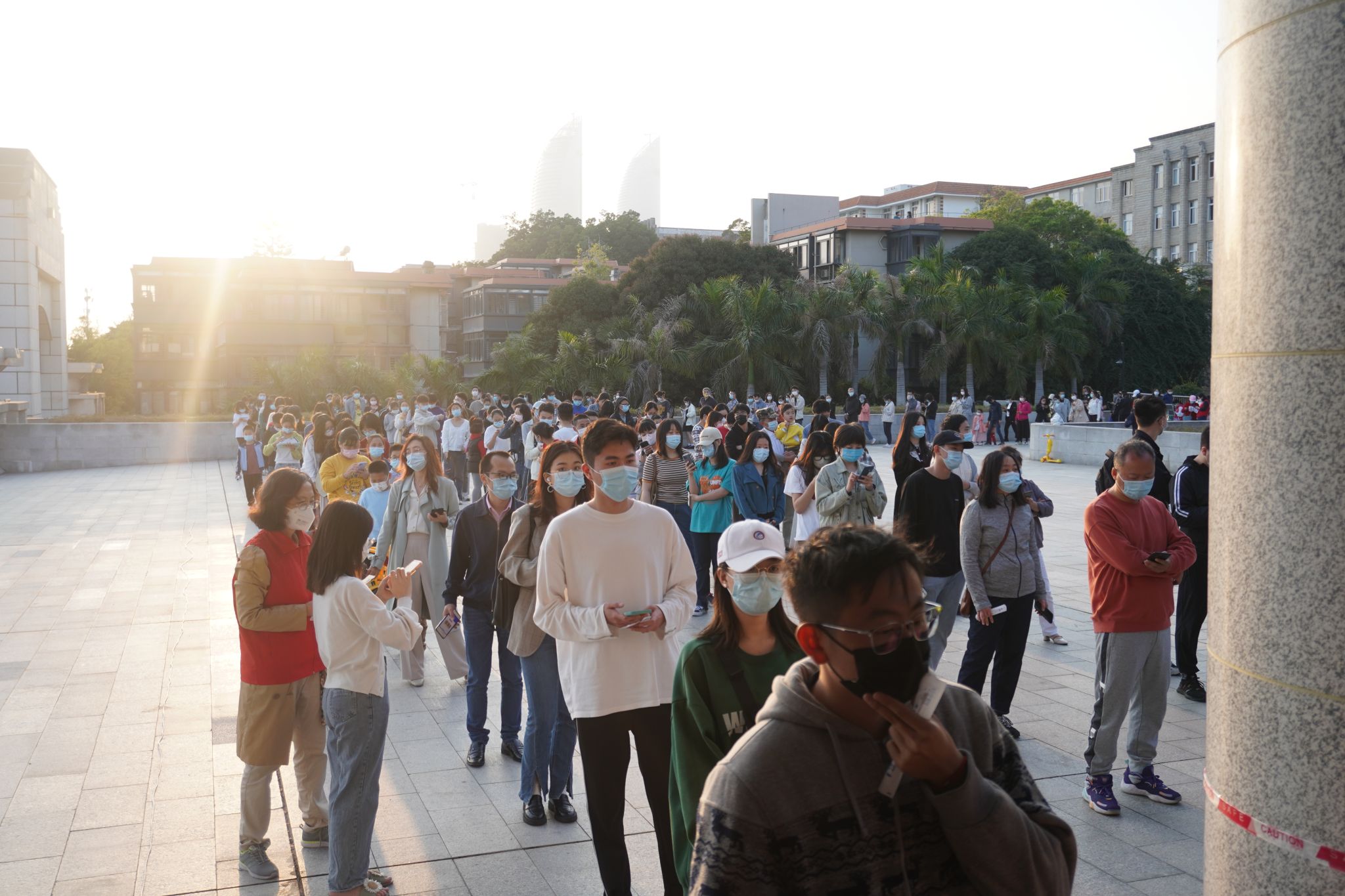 为落实厦门市应对新冠肺炎疫情工作指挥部〔2022〕第2号通告,全面落实“核酸必检”,根据学校核酸检测工作总体部署,外文学院牵头负责白城检测点有关工作。志愿者招募通知发出的2小时内,12位教师、8位学生志愿者陆续主动报名,队伍迅速集结!来自中国台湾的张雅惠老师立即从家中赶来,胡永洪、郑惠人、彭欣、刘浩然等教师均提前就位,已退休的洪梅英老师和临近退休的张欣老师也干劲十足,其中有些老师已数次参加核酸检测等志愿服务。