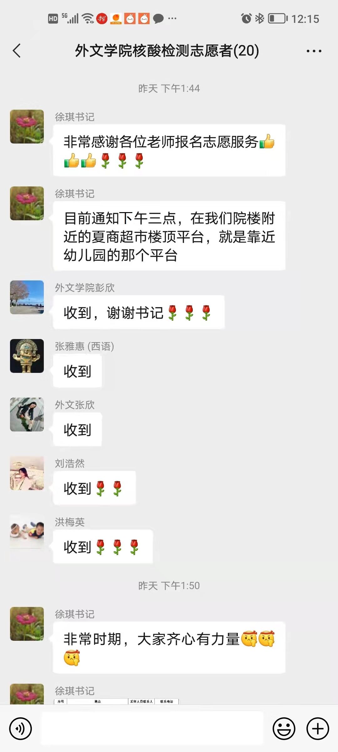 从下午4点启动工作,直至晚上9点半夜色深沉之时,20位外文师生志愿者与医务组等现场工作人员齐心协力、全心投入,顾不上喝水、吃饭,坚守岗位连续工作,共完成核酸检测1640人次。