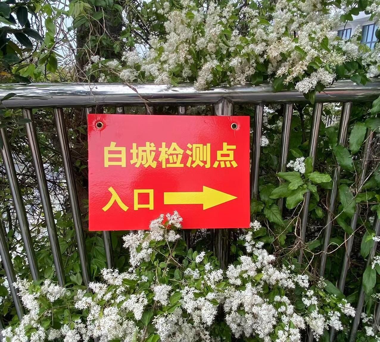 基于第一次检测工作经验,白城检测点合理调整检测队伍动线,制作各类标识,志愿者分工协作,充分做好准备,从容应对第二次核酸检测工作。为预防下雨,工作组因地制宜布置两排帐篷,确保前来检测的人员从录入台到检测台均无惧风雨。
