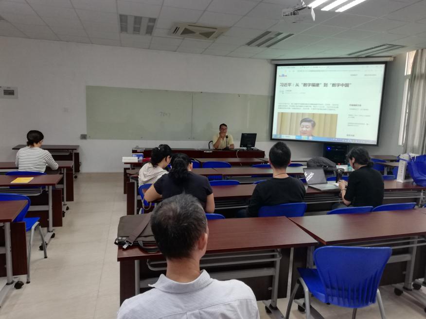 会议开始主持人李力同志与跟大家分享了第三届数字中国建设峰会市在福州召开最近的之际的一篇文章报道《习近平:从“数字福建”到“数字中国”》,该报道发出的时间正值第三届数字中国建设峰会市在福州召开,文章指出,:20年前,习近平在福建任职期间,作出建设“数字福建”的战略决策;。党的十八大以来,习近平总书记高度重视信息化发展,加强顶层设计、总体布局,为“数字中国”建设指明了发展方向。看到报导随后,杨信彰、胡兆云、高云端、韩潮等多名党员分享了“数字福建”、“数字中国”建设给他们的生活带来的巨变,大家一致感佩习近平总书记的高瞻远瞩。