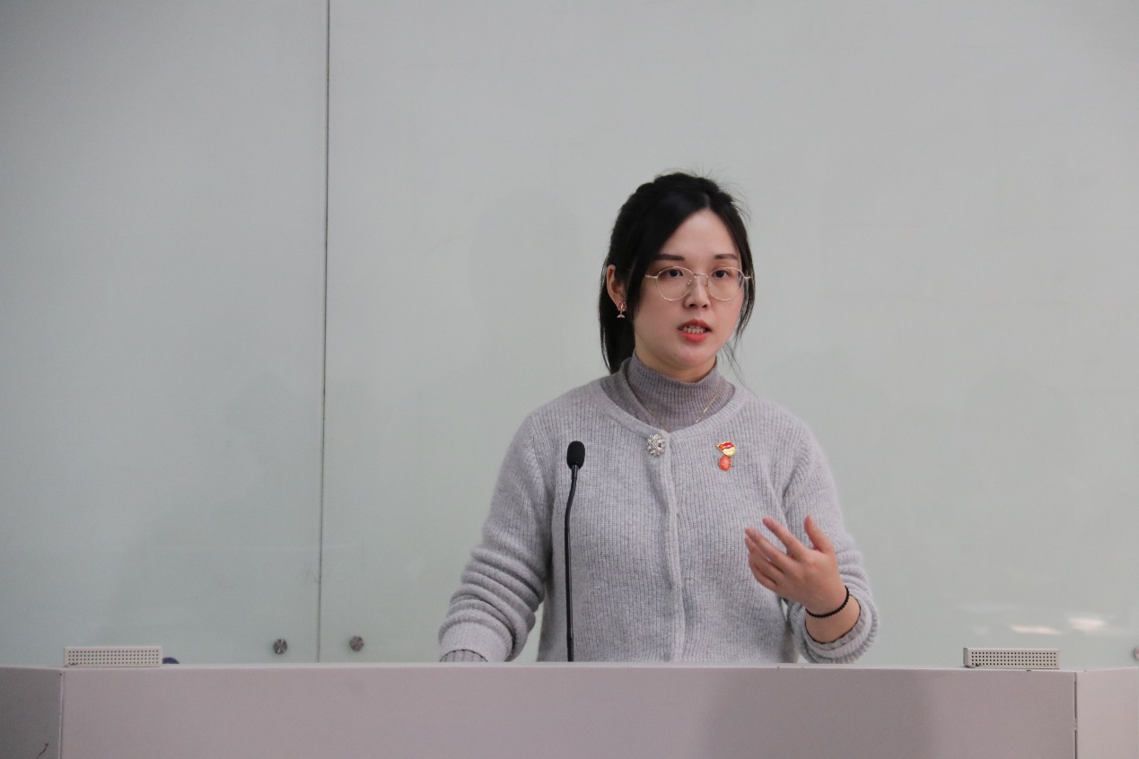 讲座伊始,周晓牧首先与在座党员师生代表分享了其在教育部直属机关党委、直属机关团委先后借调、挂职工作的经历与收获。周晓牧表示,教育部的工作令她体会到了高标准、严要求的中央和国家机关工作作风,领略到了身边的正能量,自己也总被身边优秀共产党员的理想信念与情怀担当所感染。她以习近平总书记提出的“没有比人更高的山,没有比脚更长的路”这句话,勉励青年党员们积极“走出去”,拓宽自己的视野,不断提升自身能力。