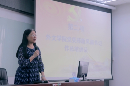 外文学院党委副书记郑新风在毕业式上讲话,她总结了本期党校的工作情况,希望学员们以十九大精神为指引,坚持深入学习贯彻习近平总书记系列重要讲话精神,打牢思想政治基础,坚持深入学习贯彻十九大精神以及习近平新时代中国特色社会主义思想,在专业学习、政治学习、学生工作等方面积极作为,展现自身作为入党积极分子应有的风采,争取早日加入党组织。