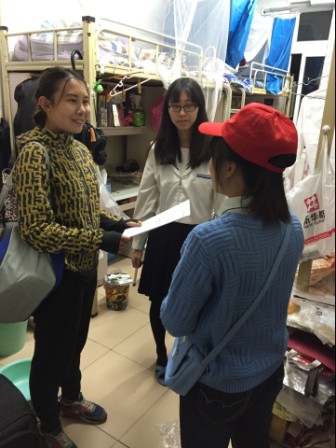 志愿者们耐心地引导行人走白城天桥 活动过程中,志愿者们秉持耐心的态度进行交通引导,使多数横穿马路的游客及时认识到错误,并表示下次会注意交通安全。志愿者们为维护文明交通,缔造美丽厦门作出自己的一份贡献。该活动的接力棒将在12月12至13日传到2015级本科生俄专团支部,维护文明交通的故事仍在持续。 宿舍楼“公共卫生维护计划” 12月5日至6日,厦门大学外文学院2015级本科生英专二班团支部开展了宿舍楼“公共卫生维护计划”活动。团员们化身“清洁小卫士”,力求“垃圾不落地”,打扫了石井1、石井2、芙蓉9和凌云3的公共区域,为维护舒适整洁的校园生活环境尽了自己的一份力。