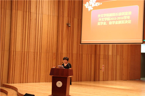 9月24日下午3时,厦门大学外文学院2016级新生开学典礼暨学风建设大会在科学艺术中心音乐厅成功举行。外文学院77级院友、厦门大学汉语国际推广南方基地/孔子学院办公室党总支书记苏子惺,77级院友曾雁、林莹如,84级院友、厦门精艺达翻译服务有限公司董事长韦忠和,厦门精益达翻译服务有限公司培训中心教务主任陈杲,学院党政领导及各系部领导老师出席本次开学典礼。本次典礼由外文学院党委副书记郑新风老师主持。 典礼在庄重的国歌声中拉开了序幕。大会伊始,院长张龙海教授上台发表讲话。张院长对新同学们的到来表示欢迎。他向台下的同学们介绍,今年是厦门大学建校95周年,也是外文学院建立的第93个年头。他将厦大外文历经沧桑岁月、风雨洗礼取得的丰硕成果娓娓道来。随后,他指出,国家“一带一路”倡议、“中国文化走出去”计划的大背景以及学校“繁荣哲学社会科学计划”的实施都为外文学科的繁荣发展搭建了开放的平台,提供了良好的时机。张院长向外文学院2016级的“新鲜血液”提出了四点勉励:希望同学们勤学笃实、严谨治学;正心修身、明辨修德;脚踏实地、知行合一;胸怀家国、勇担使命。最后,张院长希望同学们未来能在外文学院这片沃土上,用智慧与努力实现自己的抱负,不负家国、不负梦想、不负青春。 接下来,教师代表、英语系陈菁教授上台发言。陈菁教授首先祝贺新同学们能够来到外文学院这个大家庭,度过自己最难忘最精彩的大学生涯。站在台上,她不禁回首自己曾以外文新生身份坐在台下参加开学典礼的场景。作为过来人,她将自己在厦大从教二十余载的丰富经验分享给同学们,希望能够给予大家前行的力量。陈教授也谈到自己对中国女排主教练郎平的欣赏,在比赛期间,她与队员们交谈中发生的思想碰撞,让女排一次次或重振旗鼓、或保持优势,最终走向胜利。她也希望,能用一辈子的时间,用自己的力量与同学们发生这种智慧的“碰撞”。陈教授字字句句,无不饱含对同学们的浓浓深情,令人动容。 随后,老生代表、2014级法语语言文学专业硕士生雷淑淋同学与新生代表、2016级西班牙语专业本科生林昊同学依次上台发言。作为老生代表,雷淑淋同学跟新生分享了自己在厦大六年学习生活的感想,希望同学们能向先辈们学习,用“自强不息,止于至善”的要求来勉励自己,创造自己与外文的新辉煌。作为新生代表,林昊同学回顾了初入厦园的经历:军训时坚韧不拔,斗志昂扬;台风后师生团结一心,重建厦园。他回望昔日的大学梦,感怀厦大近百年历程的“南强梦”,展望将要为之奋斗终身的中国梦,祝愿所有2016级的外文同学们在追梦的路上永不止步,最终成为国之栋梁。 紧接着,典礼进入外文学院年度荣誉称号、奖学金与助学金颁奖环节。院党委副书记杨云良老师宣读外文学院2015-2016学年荣誉称号表彰决定,副院长徐琪教授宣读外文学院2015-2016学年奖学金、助学金颁发决定。现场的领导嘉宾依次上台为获奖同学颁奖。此次颁奖仪式不仅是对老生们过去一年来在学习与工作方面取得成绩的充分肯定,更是对新生们树立远大目标、坚定前进步伐的一种激励。 颁奖环节结束后,新生佩戴校徽仪式随即展开,出席典礼的领导嘉宾们为新生代表们佩戴校徽。随后,全体新生起立,宣誓并签订《厦门大学学生诚信承诺书》,对自己接下来在厦大的学习与生活做出庄重承诺,立志勤学修身、文明诚信,共同传承外文精神。 典礼接近尾声,院党委书记陈志伟老师上台讲话。陈书记再次对新生的到来表示热烈的欢迎与衷心的祝贺。她指出,2016年是特殊的一年,厦大遭受了中华人民共和国成立以来最大级别台风“莫拉蒂”的冲击。然而,全校师生众志成城,全力投身到防灾救灾的工作中,用行动诠释了“众人拾柴火焰高”的真谛。她希望同学们能够志存高远、心怀祖国,密切关注国家建设和社会发展的需要,深刻认识和理解自己承担的历史使命,自觉调整个人理想与社会需要之间的差距,立志于投身我国改革开放和现代化建设的伟大事业中。陈书记强调,希望同学们要有勤学多思、耕读不辍、求真务实、锐意创新的精神,用实际行动响应习近平总书记发出的“不忘初心,继续前进”的号召,在这一号召的指引下,遵循我校“自强不息,止于至善”的校训,传承我校“四种精神”的要求,爱国爱校、艰苦奋斗、知行合一、乐于奉献,在厦大,在外文,用智慧、勤奋和热情谱写自己人生中最美好的篇章。 大会在激昂的校歌声中圆满结束。希望2016级新生能够用勤奋浇灌梦想,用汗水描绘青春,在老师和同学们的帮助和陪伴下培养独立人格,孕育自由思想,拓展国际视野,绽放属于自己的荣光。