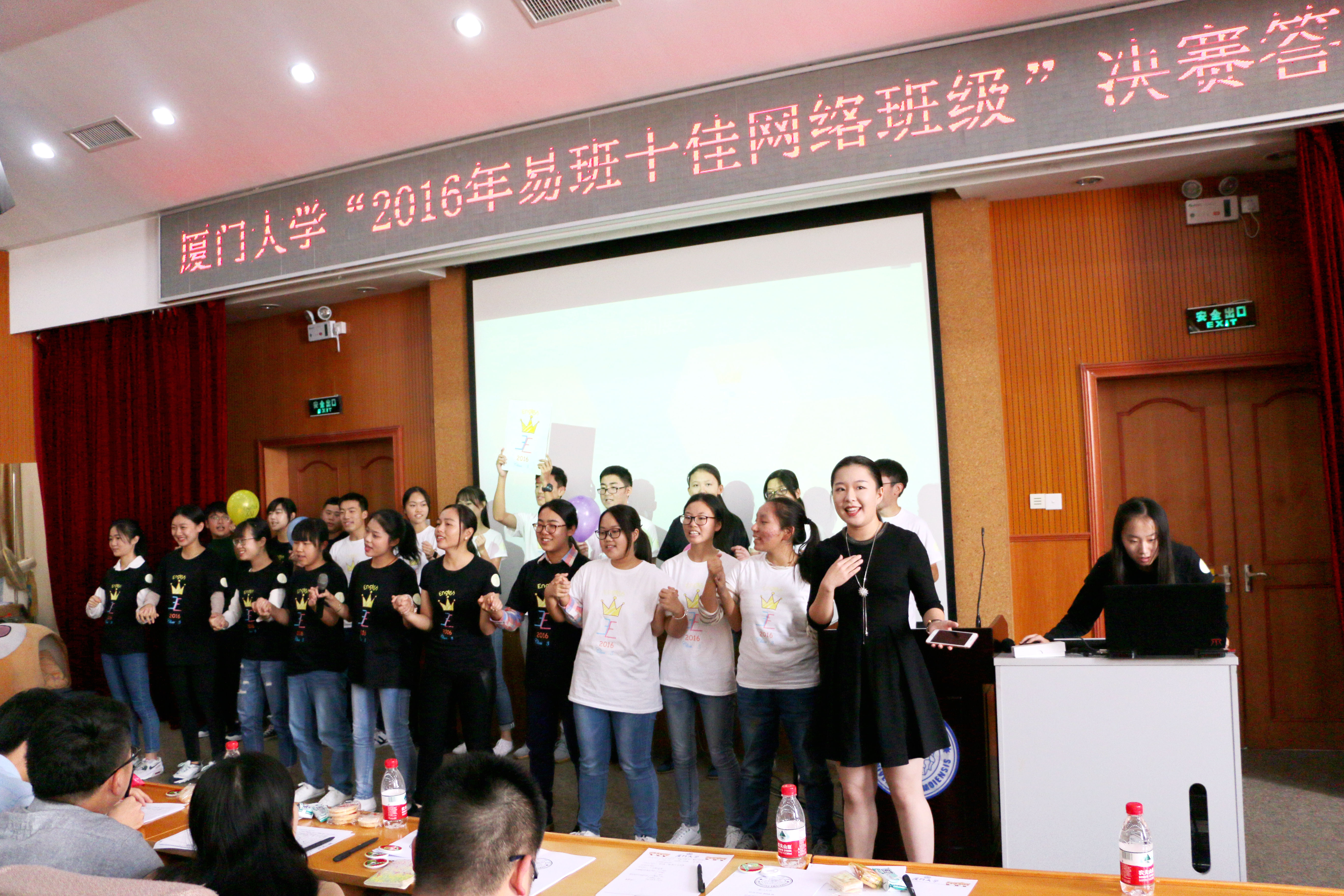 12月11日上午,厦门大学“2016年新生易班十佳网络班级”评选活动的决赛答辩在化院报告厅举行,共有来自19个学院的26个班级参加。2016级本科英语专业三班代表外文学院参赛,外文学院团委副书记、2016级本科生辅导员肖盈作为指导老师出席本次活动并担任现场评委。16级本科英专三班在答辩环节发挥出色,经过综合排名,最终获得“优秀易班网络班级”和“最佳人气班级”称号,肖盈老师获评“优秀指导老师”称号。