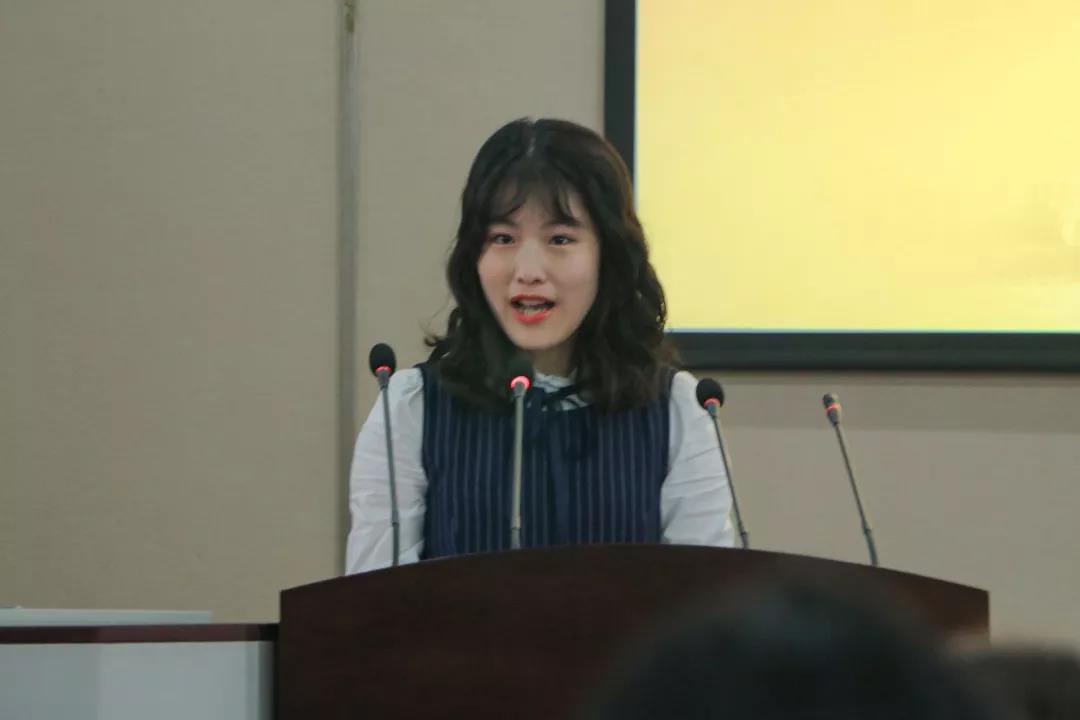 外文学院2017级本科生张馨方同学表示通过多样化的学习方式,她加深了对党的认识、明确了自身定位。她讲到青年人应当紧密围绕在以习近平同志为核心的党中央周围,展现责任与担当。第一、不忘初心立大志。牢记共产主义理想信念,牢记红色基因。第二、脚踏实地学本领。我们要乘着第四届互联网+带来的双创热潮,乐于创新。第三、陶冶情操修品德。摒除浮躁心理,用专注的匠心雕琢自己,坚守向上向善的正能量。青年新则国家新,青年强则国家强,我们应展现出青年人的责任与担当,用青春气息给国家带来飞扬的活力、蓬勃的朝气和灿烂的明天。