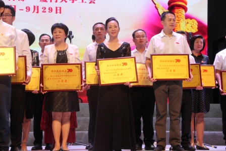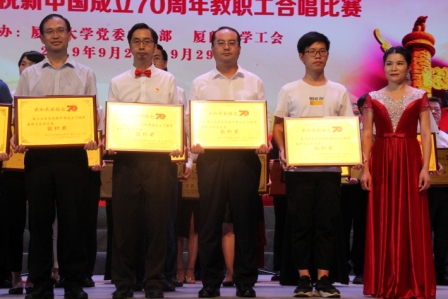 9月29日晚,厦门大学庆祝中华人民共和国成立70周年“我和我的祖国”主题合唱比赛在建南大会堂隆重举行。外文学院教职工合唱团深情演绎了《我和我的祖国》、《鼓浪屿之波》两首曲目,用激情澎湃、气势恢宏的歌声,表达了对新中国七十华诞最诚挚的祝愿。最终,外文学院以出色的表现荣获“二等奖”及“组织奖”两项奖项。