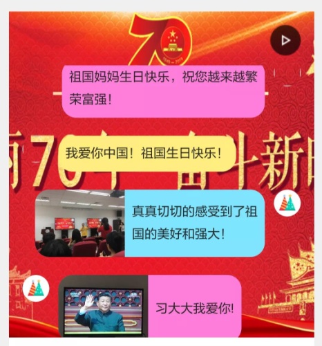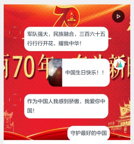 在教师、学生代表上台发言的同时,在场师生纷纷拿起手机扫码,送上诚挚的祝福:“祖国妈妈生日快乐,祝您越来越繁荣富强!”“真真切切的感受到了祖国的美好和强大!”“作为中国人我感到骄傲,我爱你中国!”“祝福祖国繁荣富强,祝福我厦再创辉煌,祝福外文越来越好!”