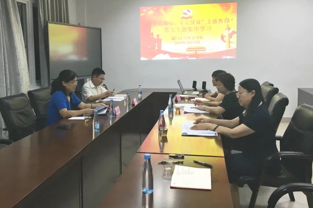 近年来,外文学院通过“红色外文大讲坛”邀请了台湾研究院刘国深教授,南洋研究院/国际关系学院庄国土教授,教育研究院别敦荣教授,宣传部部长徐进功教授,校党建办主任、组织部副部长廖志丹等校内外知名专家为学院师生作报告,为师生搭建了一个良好的政治理论学习平台。今后,外文学院党委还将继续拓宽师生政治理论学习的深度和广度,丰富学习形式和载体,引领师生深入学习贯彻习近平新时代中国特色社会主义思想,凝聚起推动学院学科发展建设和管理水平提升的磅礴力量。