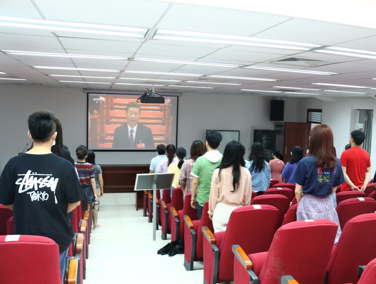 5月22日上午,十三届全国人大三次会议在北京人民大会堂开幕,国务院总理李克强作政府工作报告。外文学院党委书记陈志伟,党委副书记杨云良,副院长李美华、吴光辉和师生代表在南光三112报告厅集中收看大会开幕盛况,第一时间了解政府工作报告内容。