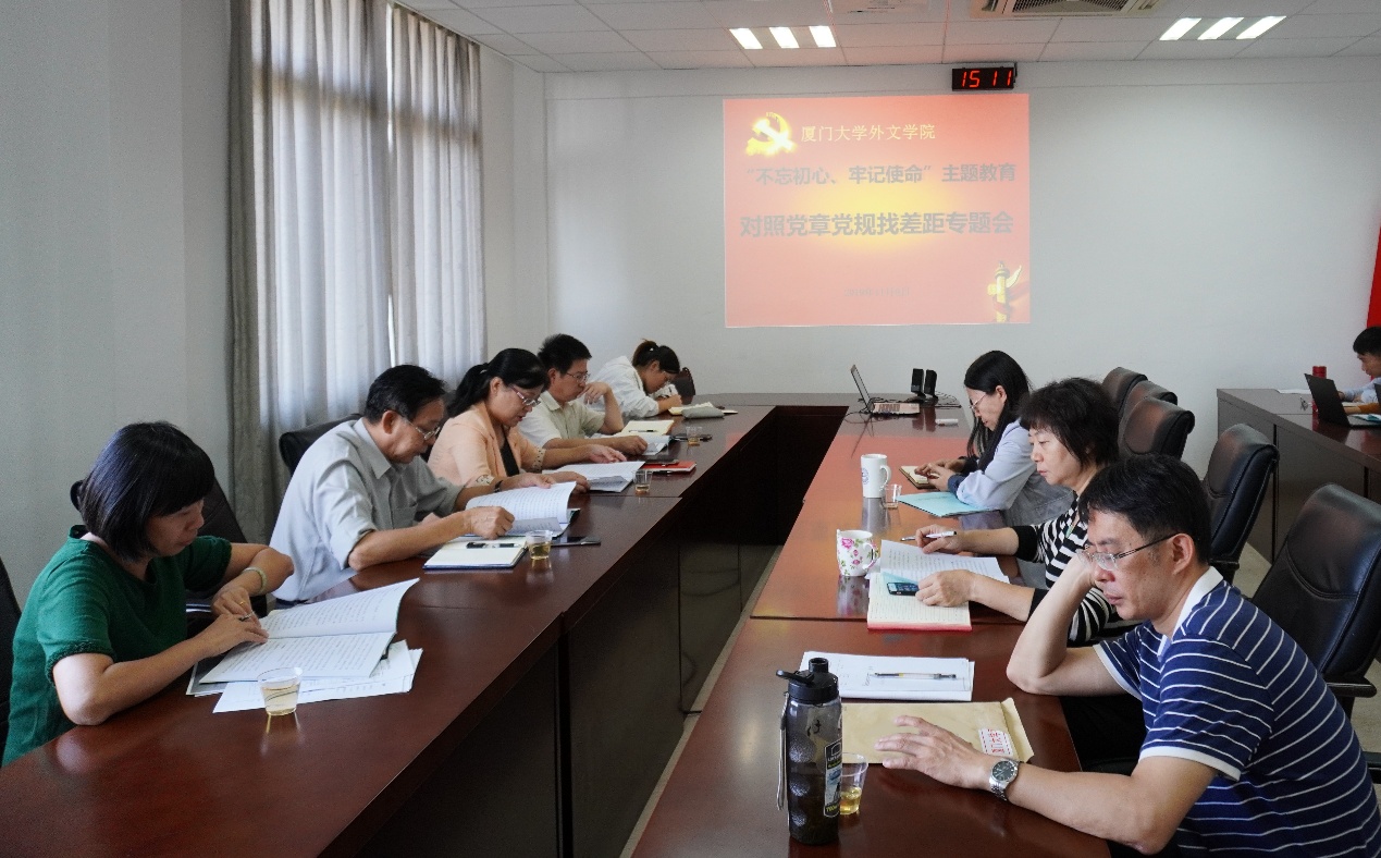11月8日下午,为深入推进“不忘初心、牢记使命”主题教育,外文学院党员领导干部于德贞楼524召开“对照党章党规找差距”专题会议,学校巡回指导组组长杨敬达同志莅临会议指导。外文学院党委书记陈志伟,党委副书记杨云良、沈丽秀,党委委员、副院长徐琪、辛志英出席了会议,学院各党支部书记列席会议。会议由陈志伟书记主持。