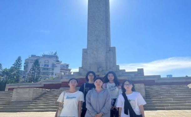 8月8日上午,烈日当空。实践队员们庄重地肃立于厦门烈士陵园纪念碑前。现场没有专业讲解员,队员们依靠行前查阅的资料,由队长向大家讲述解放厦门战役中2700多名指战员的英勇牺牲。“许多烈士牺牲时,年纪与我们相仿……”这句话让现场所有人陷入深思。
