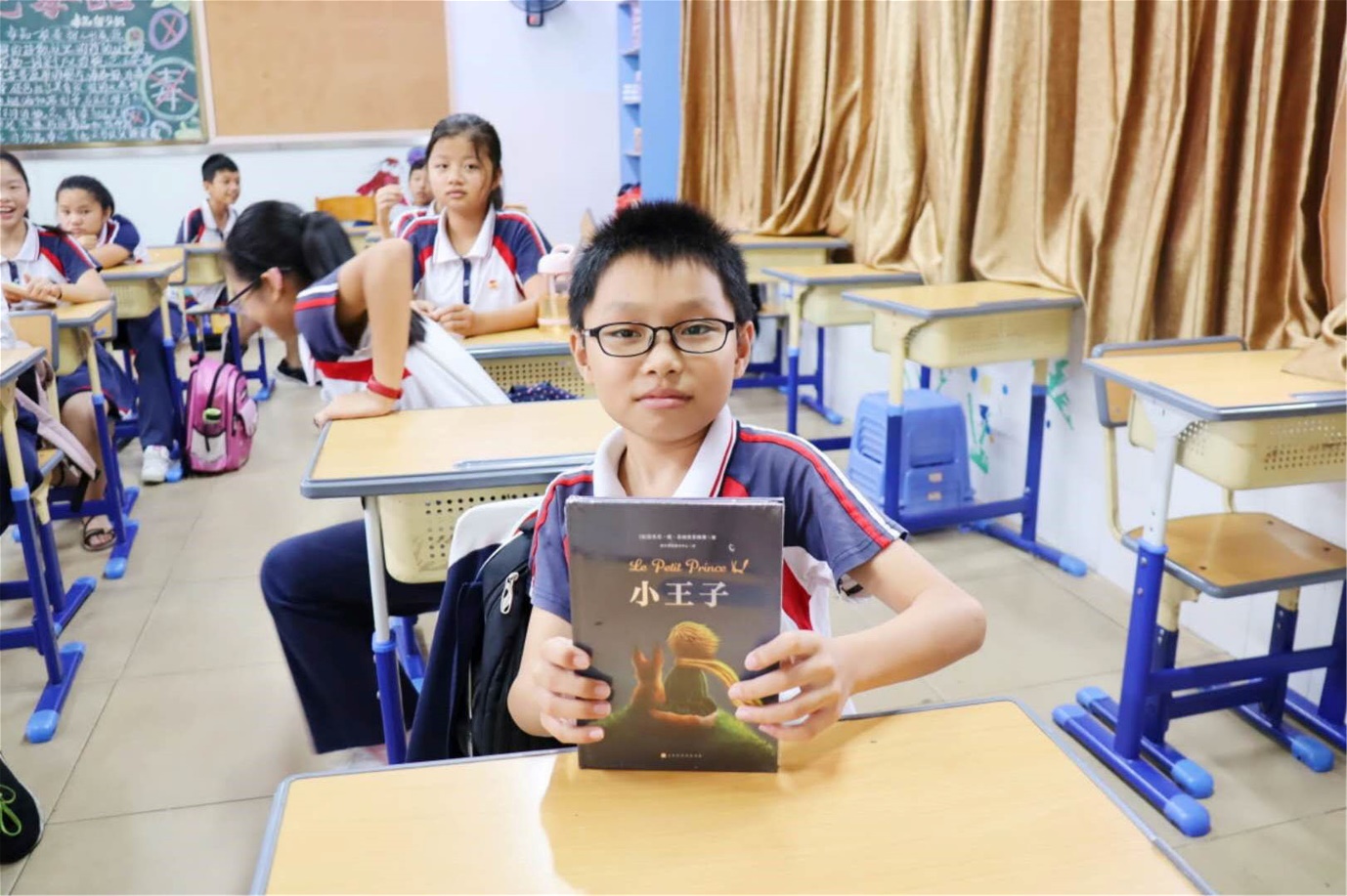 小朋友们展示知识问答竞赛奖品