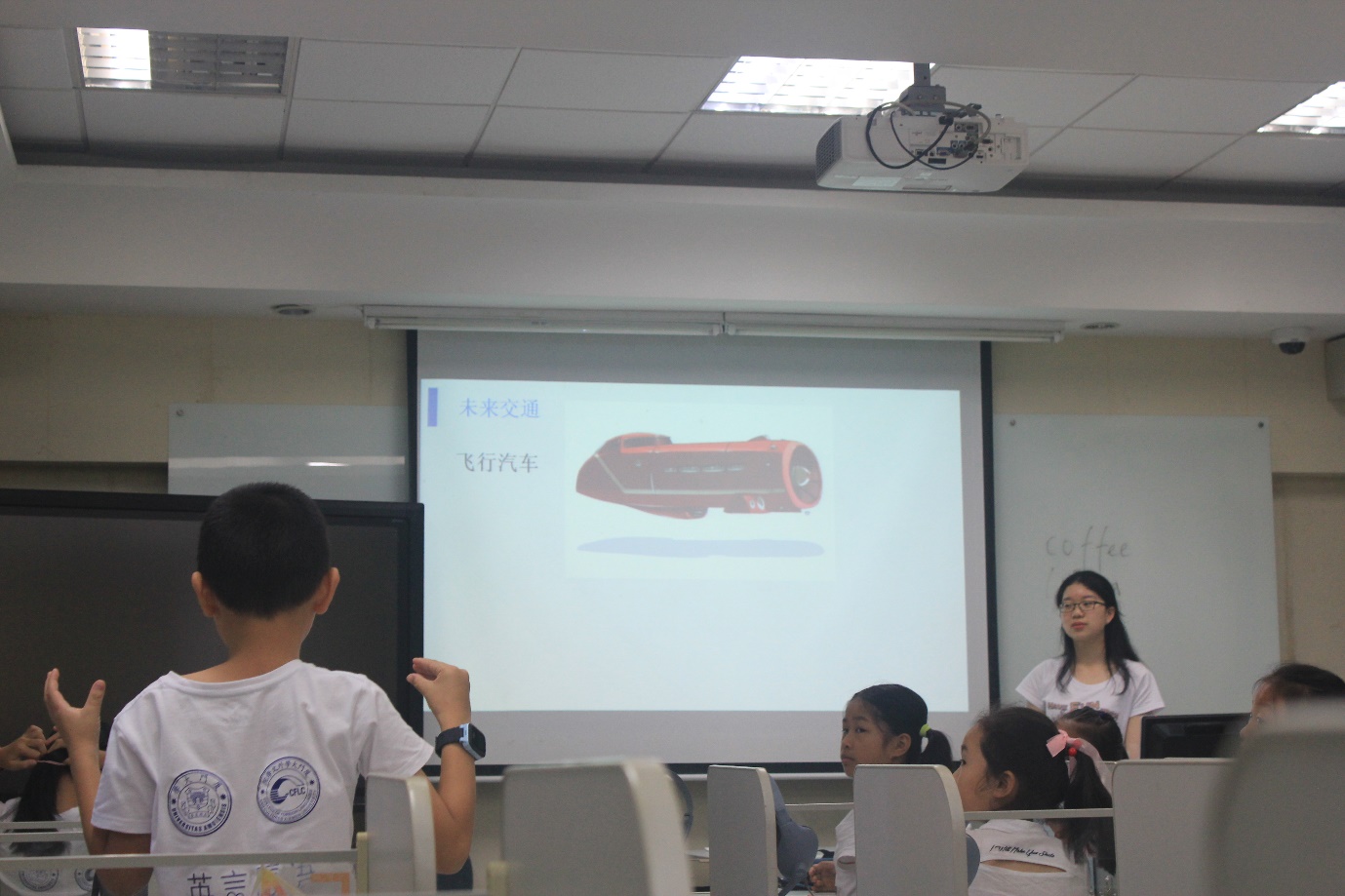 回顾过去,是为了更好地前行。在最后一天的课堂上,实践队员以“展望未来,放飞梦想”为主题,向营员们介绍了与“衣食住行”有关的新兴事物的英语表达,并鼓励大家发挥想象、尽情畅想未来的生活。