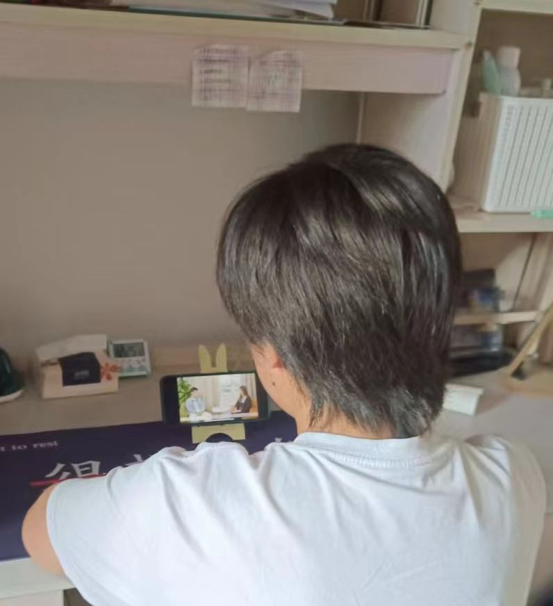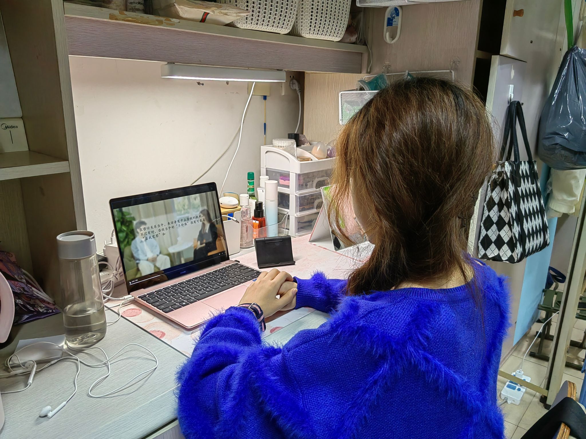 2022级西班牙语专业宿舍心理联络员赵海棠正在观看培训视频