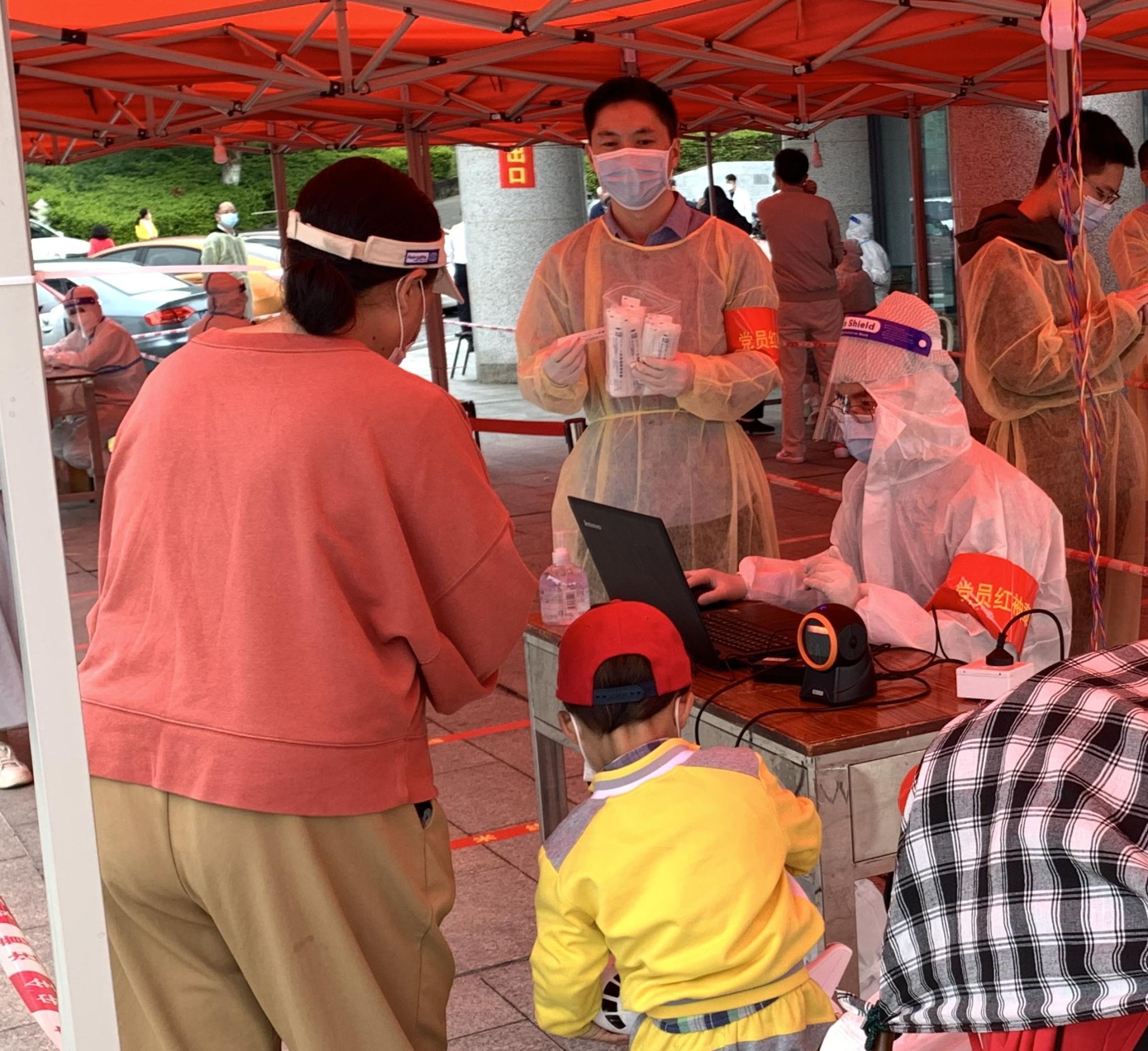 一位行动不便的老者在家人搀扶下来到检测点入口附近,徐琪书记见状,便协调在场医务负责人,为老人特事特办,开辟临时的“流动检测台”,由医务人员代为扫码登记,检测员主动上前检测,一分钟内便完成了老人及其家人的核酸检测。我们为有爱的医务组和志愿者点赞!