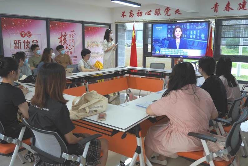4月27日,在“五四”青年节来临之际,外文学院2021级翻译硕士党支部在海韵园区党团活动室召开“牢记嘱托,青春向党”主题党日活动,聚焦习近平总书记在中国人民大学考察时的重要讲话精神开展学习,激励青年党员赓续红色血脉,传承红色基因,用行动践行“请党放心,强国有我”的铮铮誓言。海韵四“一站式”学生社区兼职辅导员、外文学院党务秘书余晓芳参加活动,会议由党支部书记孔雯主持。