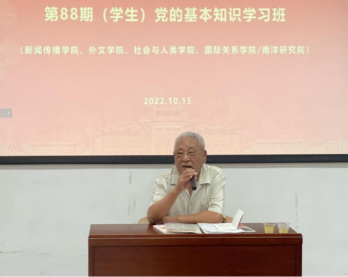 本次学习班由新闻传播学院、外文学院、社会与人类学院、国际关系学院/南洋研究院四院党委合办。从10月15日到10月31日,将举办7场专题报告,组织学员集中观看党的二十大开幕直播、完成小组讨论、线上考试、撰写学习心得等各项学习任务。学习班严格落实学校常态化疫情防控要求,学员听课期间全程佩戴口罩,主动配合体温检测,做好健康管理与防护。
