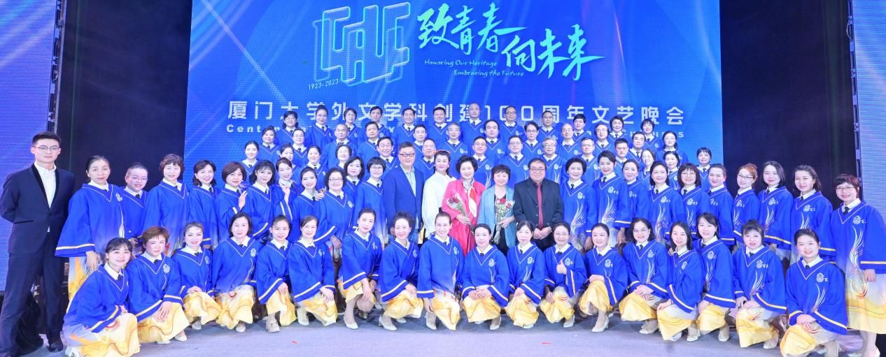 4月8日晚七点半,“致青春·向未来”外文学科创建100周年文艺晚会在厦门大学建南大会堂举办。嘉宾、院友们和学院师生欢聚一堂,共襄盛举,见证外文荣光。