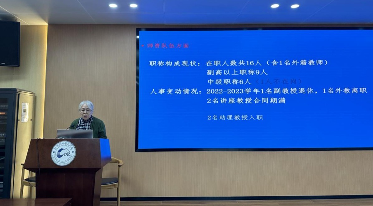 副院长辛志英对新学期研究生教学教务工作、题库建设等重点工作进行工作布置;副院长江桂英强调了新学期本科教学教务工作、授课纪律和突发情况处理等注意事项,并重点布置了本科教育教学评估、“外语+”专业建设等重点任务。
