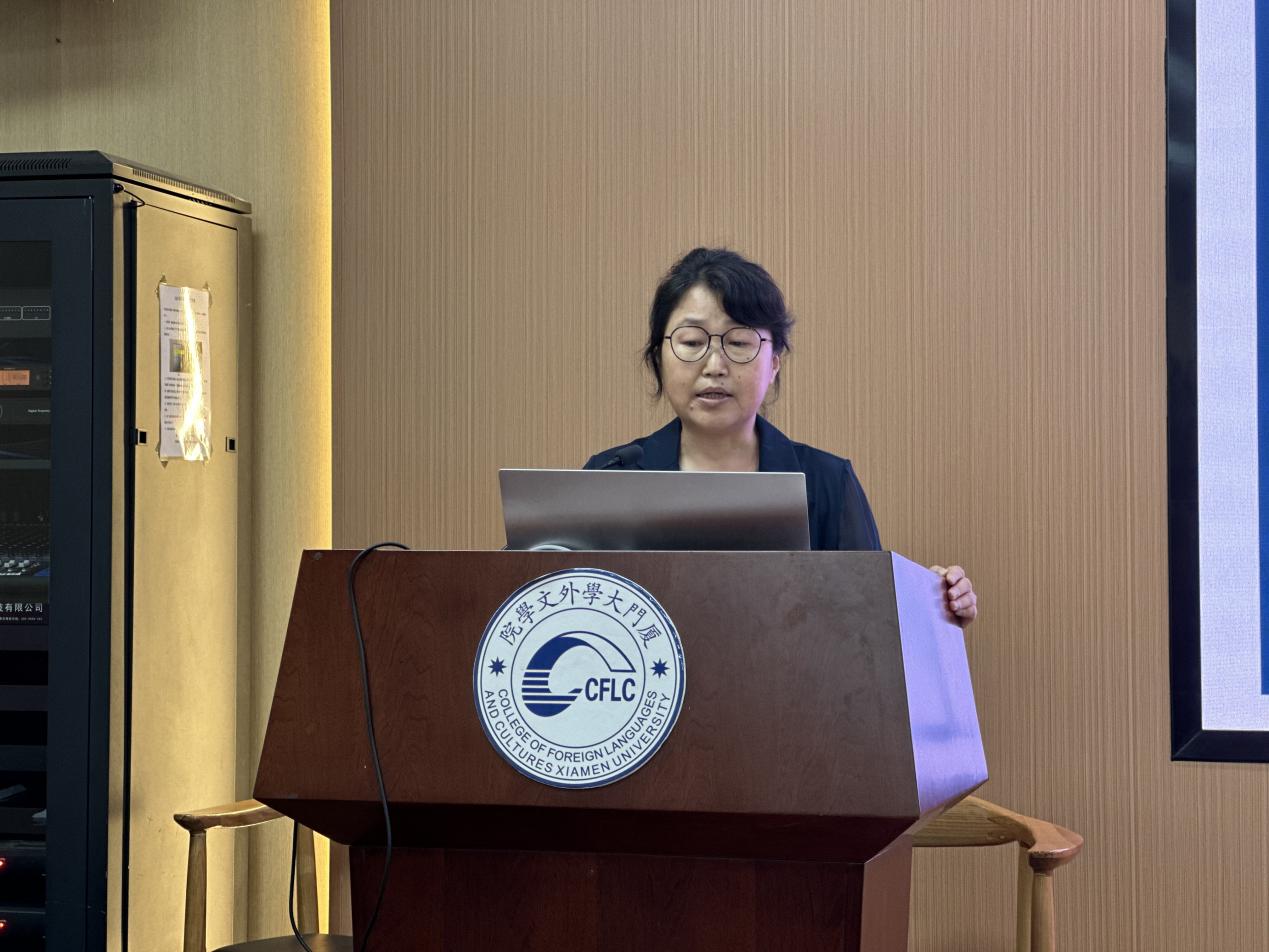 在新进教师欢迎环节,陈菁院长逐一介绍了新入职的教职工:英语系蔡梦竹、外语教学部白冰、日语系大谷亨,以及行政人员邱汝岱、游培敏五位老师。五位老师依次发表感言,表达了对加入外文大家庭的欣喜与期待。