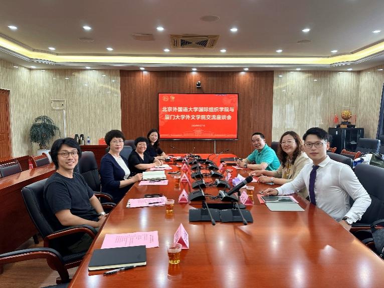 北外法学院院长助理、多语种复合型法律人才培养项目负责人姚琦,国际组织学院国际经济教研室主任王弘书,以及华体网法语语言文学系主任沈澍、教学科长陈雯娜、教学秘书游培敏等老师参加座谈交流。