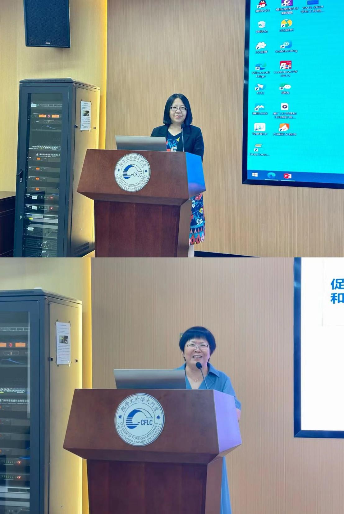 副院长辛志英、江桂英分别就本学期研究生和本科生工作重点进行布置,明确教学规范,强调纪律要求。各系部主要负责人就上学期工作情况和新学期工作计划进行简要汇报,提出具体工作设想。最后,院长陈菁讲话。她指出,各系部的汇报紧紧围绕教学改革、人才培养、师资建设等重点工作,展现了强烈的危机感、使命感和责任感,学院工作成绩的取得,与各系部的同向同行是分不开的,希望全体外文人牢牢把握守正创新与事业发展两方面的关系,锚定学科建设各项核心指标,齐心协力推动学院的改革发展,为学院新百年建设贡献智慧和力量。