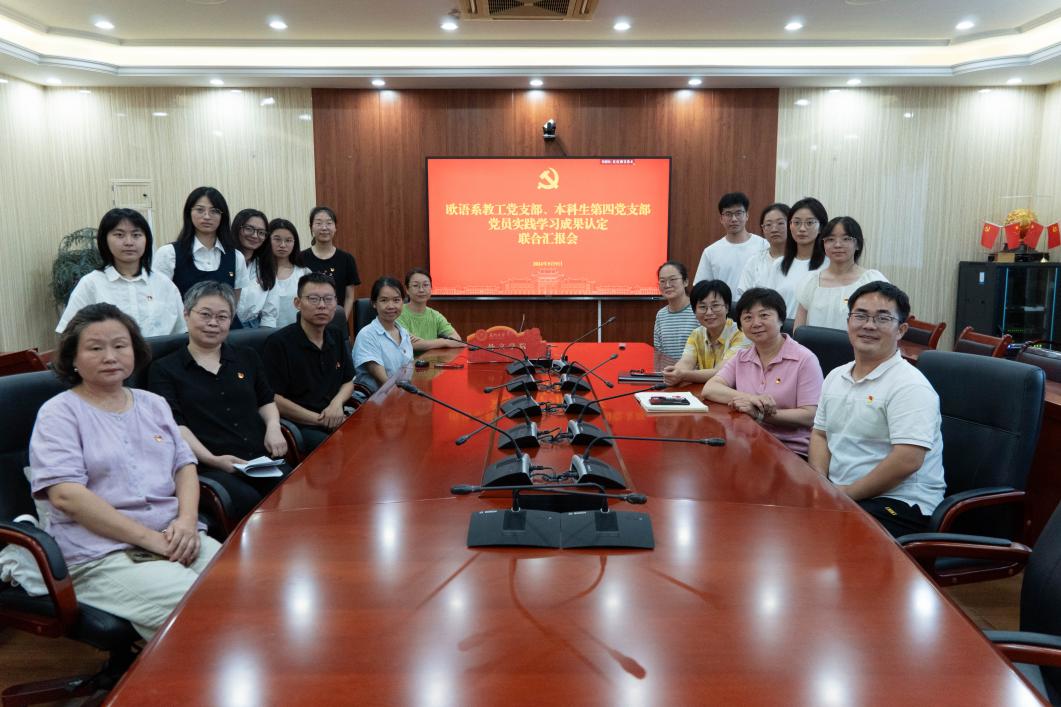 为深入学习贯彻习近平新时代中国特色社会主义思想和党的二十届三中全会精神,不断推动党的创新理论武装走深走实,引导广大党员干部将理论学习与实践活动有机结合起来,9月9日下午,学院欧语系教工党支部、本科生第四党支部联合开展实践成果认定汇报会。学院党委书记、欧语系教工党支部书记徐琪,副院长刘悦等教师党员与学生党员参加,会议由欧语系教工党支部副书记谢敏主持。