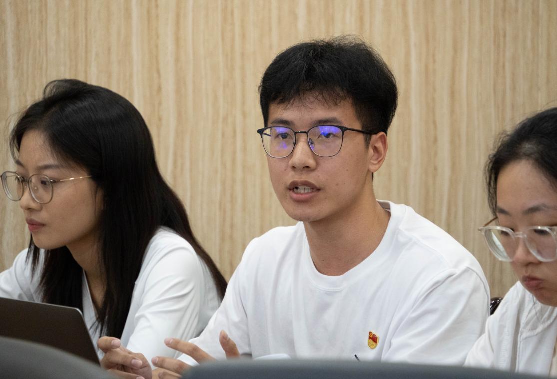 本科生第四党支部学生党员依次汇报了实践学习成果及心得感悟。崔盼递同学回顾并总结了“行闽译红”暑期社会实践队实践成果。“行闽译红”实践队发挥多语种优势,将所见所闻、所感所悟转化为多语种宣传素材,旨在将福州生态文明建设的故事,以更加生动、多元的方式呈现给世界,用外语讲好中国生态文明建设的福州故事。2021级德语专业本科生连栩莹分享了7月前往厦门破狱斗争旧址的经历;2021级德语专业本科生赖炜东也分享了其在厦门大学校史馆为游客们讲解红色历史的经历。当今时代,大到国家外交,小到商业贸易与民间往来,都需要外语作为沟通桥梁,支部成员通过参与社会实践,能够不断提升用外语讲好中国故事的理论水平和实践能力。