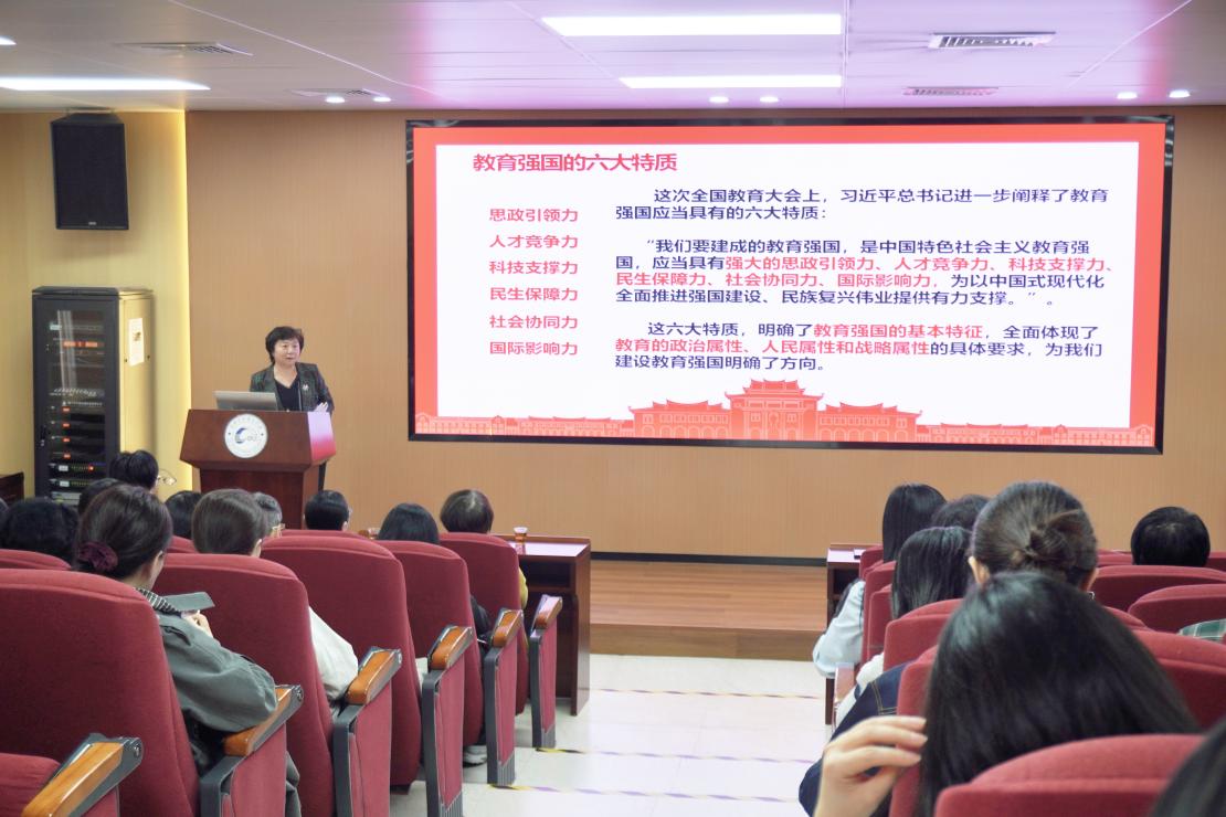 徐琪传达了习近平总书记在全国教育大会上的重要讲话精神,深入解读教育强国的科学内涵、基本路径和“六大特质”,教育强国建设要处理好的“五个重大关系”,以及全面推进教育强国建设的战略任务。她强调,全院教职工要把思想和行动自觉统一到习近平总书记重要讲话和大会精神上来,紧紧围绕立德树人根本任务,以为党育人、为国育才为根本目标,以服务中华民族伟大复兴为重要使命,为建设教育强国、推进中国式现代化作出更大贡献。