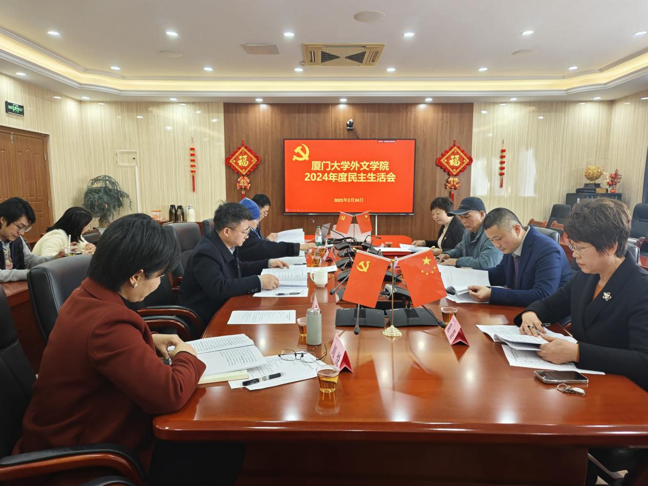 为深入学习贯彻习近平新时代中国特色社会主义思想,巩固深化党纪学习教育成果,2月24日,外文学院在南光三515召开2024年度中层党员领导干部民主生活会。学校第七督导组副组长林金宝、校纪委委员曾铮到会指导,外文学院党委书记徐琪,院长陈菁,党委副书记张胜强、罗俊峰,党委委员、副院长辛志英、戴鸿斌,副院长刘悦参加会议,系部负责人代表、工会主席列席会议。会议由徐琪主持。
