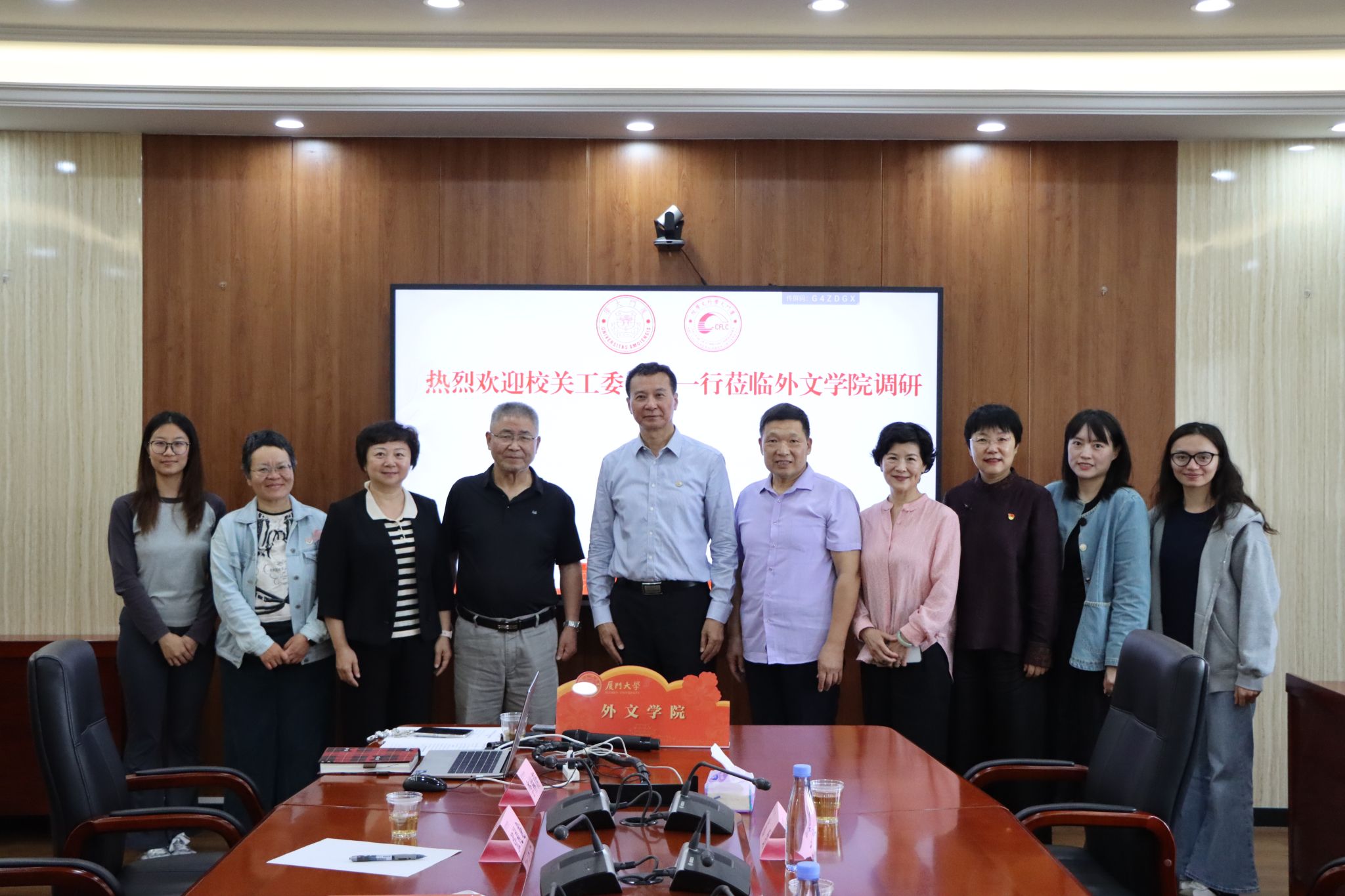 4月27日下午,校关工委常务副主任赖虹凯,副主任苏劲、郑冰冰,秘书张红疆一行莅临外文学院开展调研交流并指导工作。学院党委书记、关工委主任徐琪,党委副书记、关工委副主任罗俊峰,退休教工党支部书记张礼龙,团委副书记、关工委秘书李林蔚以及本、研学生代表参加调研。