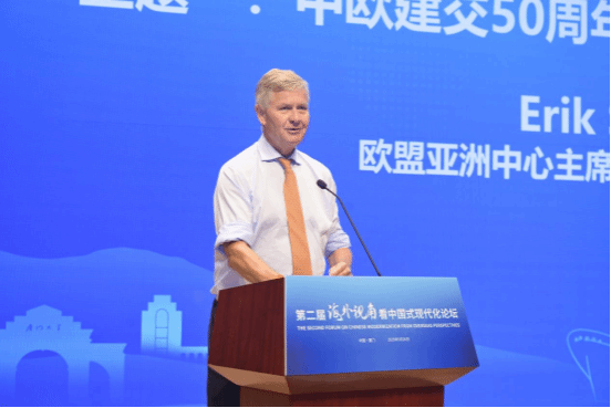 “海外视角看中国式现代化”论坛始于2024年,由厦门大学文明交流互鉴研究中心召集、发起,致力于推动中外文明对话和人文交流,目前已成功举办两届。作为论坛的系列活动之一,厦门大学文明交流互鉴研究中心负责人刘悦教授与欧盟亚洲中心秘书长颜瑞博士于5月25日签署合作备忘录,旨在建立长期合作伙伴关系,积极探索在文明交流互鉴等方面的合作。欧盟亚洲中心主席埃里克·索尔海姆、厦门大学副校长吴超鹏见证签约仪式。
