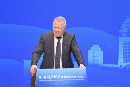 特邀嘉宾主旨发言环节,埃里克·索尔海姆聚焦中国绿色转型及全球角色,指出中国是崛起的全球南方重要一环。他建议,国际层面需构建尊重全球利益的秩序,坚持不干涉内政,设定全球共识的经贸规则,并呼吁中欧共同推动建立全球规则。