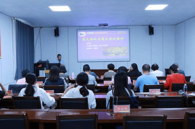中共遵义市委党校原教育长张兴毅副教授作《遵义会议与遵义会议精神》专题讲座。他以抽丝剥茧的讲授方式,系统剖析遵义会议召开的时代背景、主要经过、成功因素与重要意义,引领师生党员跨越时空界限,?沉浸式?感受这场?攸关中国革命命运的?伟大转折会议。他号召全体党员传承发扬以“坚定信念、坚持真理、独立自主、团结统一”为核心的遵义会议精神,让这一宝贵精神财富在新时代焕发新的生机与活力。