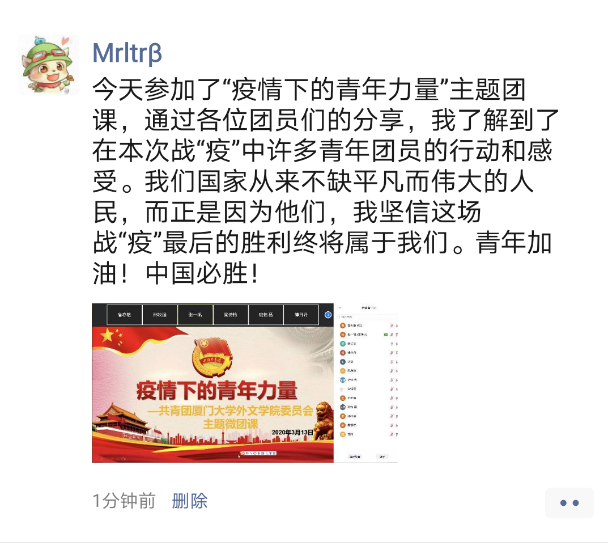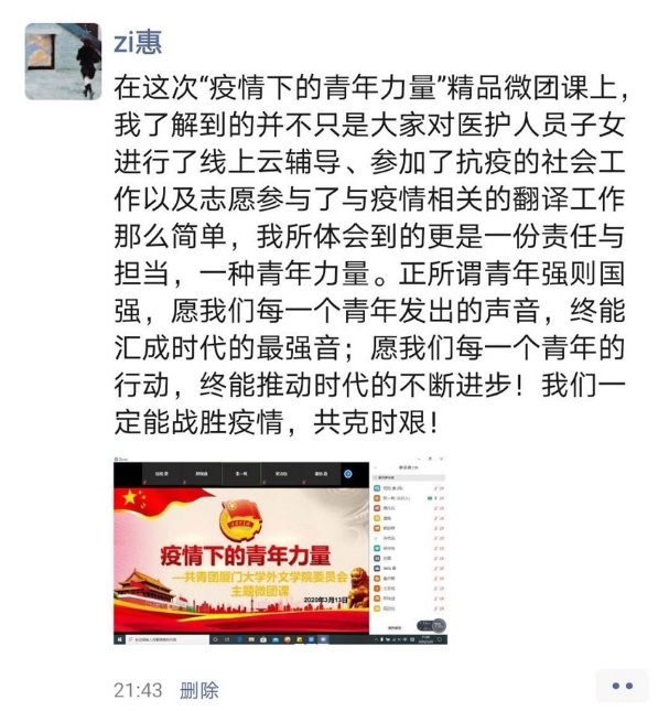 云端团课分享战“疫”故事 外文学子贡献青春力量