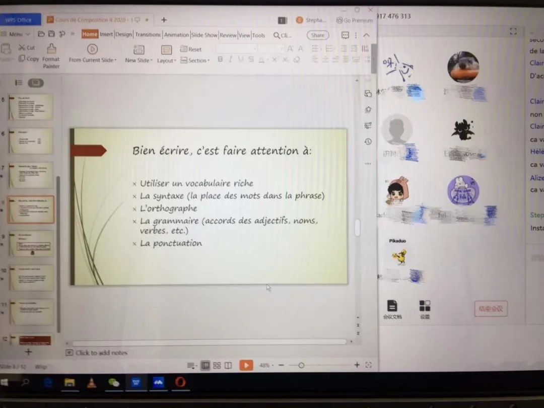 法语系有4位外教,3位外教还在海外。尽管有着7小时时差,线上授课我们准时“赴约”!在教育部“停课不停教不停学”精神指导下,法语系老师积极准备与外教密切沟通。帮助外教们做学校课程网络平台的建设、筛选优质慕课课程、建课程群等。现在外教们能较熟练的运用腾讯会议、QQ群等平台和同学们互动良好。