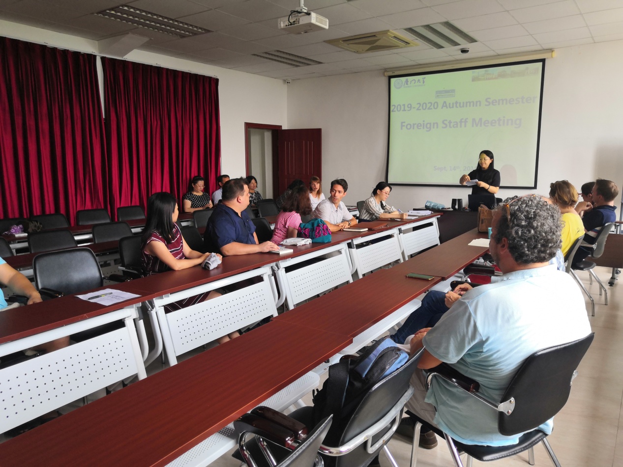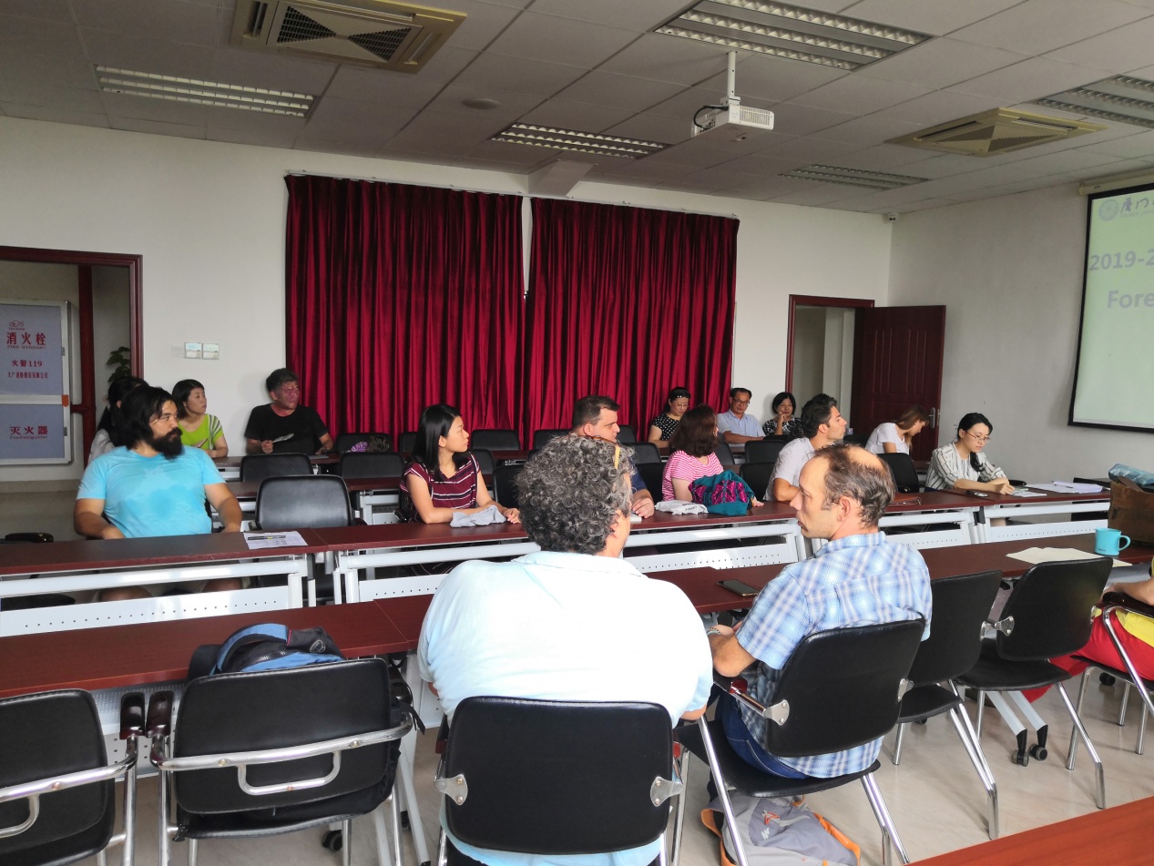 9月14日中午1点,厦门大学外文学院在德贞楼319会议室召开2019年秋季新学期工作布置会。学院副院长辛志英及学院各系部外教负责人英语系副主任林斌、日语系梁青、法语系主任鲁京明、欧语系主任顾鸿飞、欧语系张雅惠、外语部副主任胡永洪6名老师及12名外籍教师参加此次座谈会。