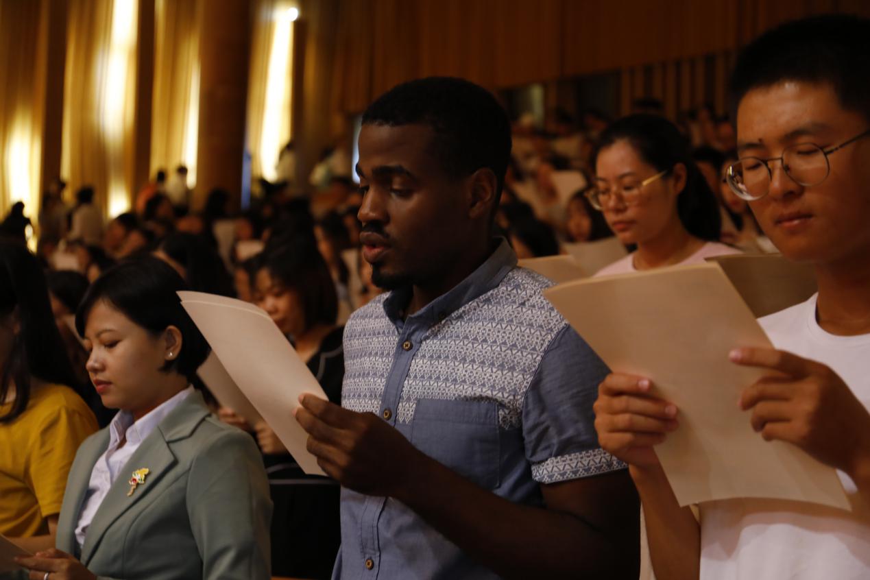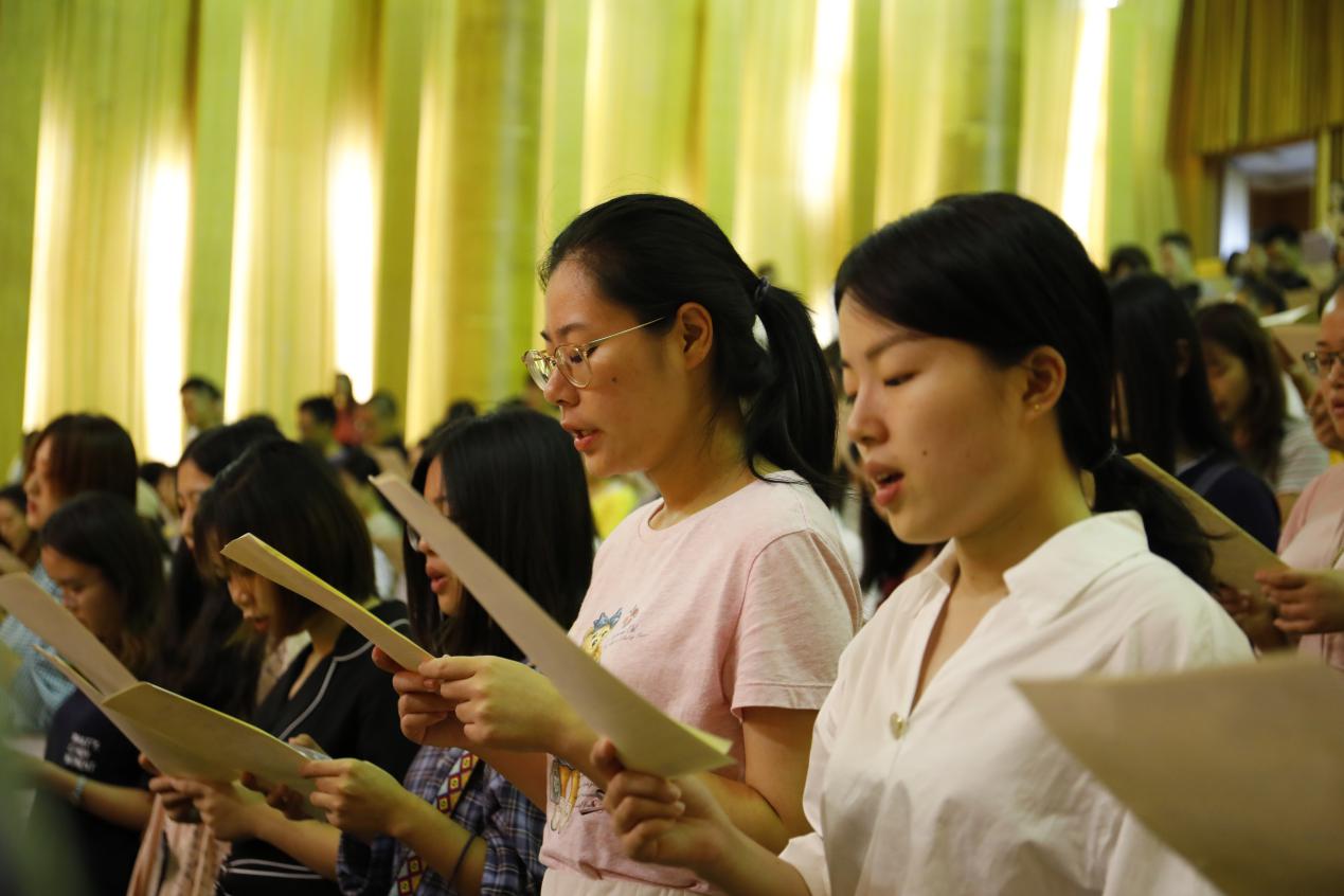 “知无央,爱无疆”,典礼在全体师生悠扬的校歌声中圆满结束。青春是用来奋斗的。愿外文学院2019级新同学们在未来的生活中,涵养世界眼光、厚植家国情怀,在拼搏中实现崇高理想,在奉献中成就人生价值,在探索中书写属于时代青年的华彩篇章!