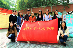 12月7日,厦门大学优秀团支部创意市集在三家村广场举行。外文学院2017级本科英专一班团支部、英专四班团支部和德专团支部代表学院参加展示。三个团支部将班级文化、志愿服务和团日团课的活动内容制成图文并茂的展板,设计了一些有趣的党团知识小游戏,吸引了许多老师、同学驻足参与。在活动现场,三个团支部的同学们唱响红歌,与参观创意市集的老师同学积极互动,并向校团委和院团委的老师们详细介绍了各自团支部的建设成果,充分展现了当代大学生积极向上的精神风貌。