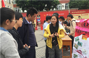 愿者向同学介绍“E晚情深”项目内容