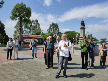 经过两个多小时的车程,退休老师们来到了第一站安溪清水岩。一下车,大家就被这里清新的空气、开阔的视野、优美的景色所吸引。老师们一路边走边聊,游兴浓郁,相互热情交流,展现出一派其乐融融的氛围。特别是当大家走到一颗参天巨大的香樟树前,导游介绍此树因为感动清水祖师的思乡之情而枝枝朝北,立刻感染了大家重阳登高思乡的情怀。林娟娟老师说:“这里风景美如画,奇峰突兀、楼阁崔嵬、石泉清冽、风光旖旎,毫不辜负蓬莱仙境之美誉。”
