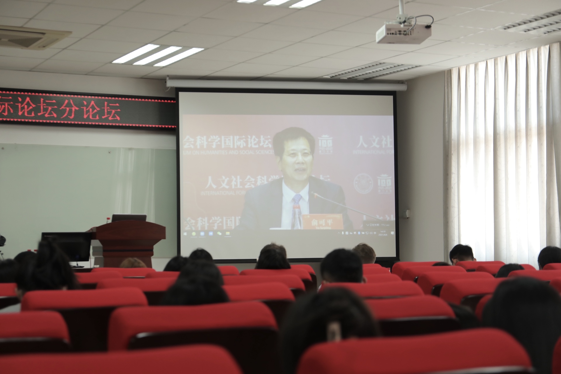 论坛开始前,全体与会嘉宾于德贞楼313会议室线上观看人文社会科学国际论坛开幕式。开幕式由厦门大学副校长杨斌教授主持。