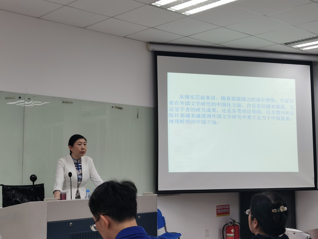苏晖教授在外国文学、比较文学及世界文学研究领域学养深厚,研究视野开阔。讲座伊始,苏晖教授提出了比较文学与世界文学批评实践如何凸显中国视角和中国立场的问题。她指出,外国文学研究的“中国化”问题在鲁迅、钱钟书、朱光潜等老一辈知识分子的著述及思想中已有体现,对于新时代背景下的外国文学学者而言,既要充分发挥中国学者的主体意识,又要以兼收并蓄的态度探索外国文学的规律。苏教授指出,我们的外国文学研究要凸显出中国立场,建构中国学者自己的话语体系,仍需付出更多努力,并从四个方面提出了建议。首先,在比较文学的视野中努力寻求外国文学研究的中国视角,需要对中外文学文化的关系投入更多关注,着重探讨二者的交互影响和交互过程中的经验、教训;第二,中国学者进行外国文学研究,应该坚持马克思主义立场、观点和方法,运用辩证唯物主义和历史唯物主义方法关照研究对象,对外国文学文化要有反思、质疑和批判的精神;第三,在外国文学研究中凸显对话性,将外国文学与中国文学和中国现实相联系;第四,中国学者应当充分发掘本民族理论和文化资源,更加努力构建中国特色的理论和话语体系。